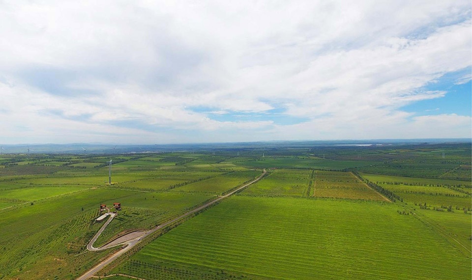 ▲可期的未来:公园的建造不仅象征着防治荒漠化的历史,还为当地带来生态、休闲、教育和经济等多方面的利益。Visionary Future: Yellowhorn farming is not only representing the history of fighting desertification but also providing ecological, recreational, educational, and economic benefit.