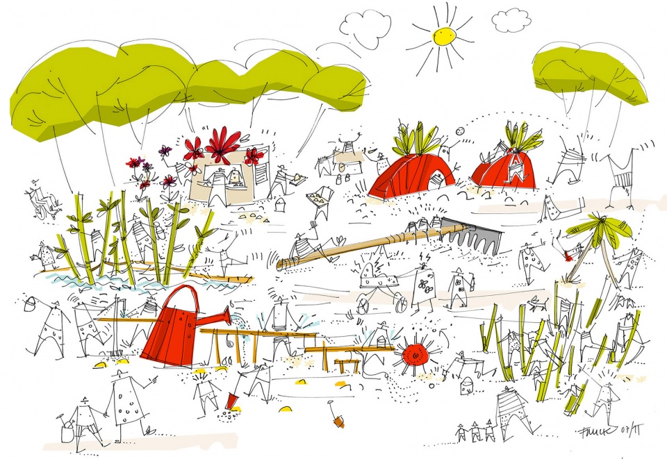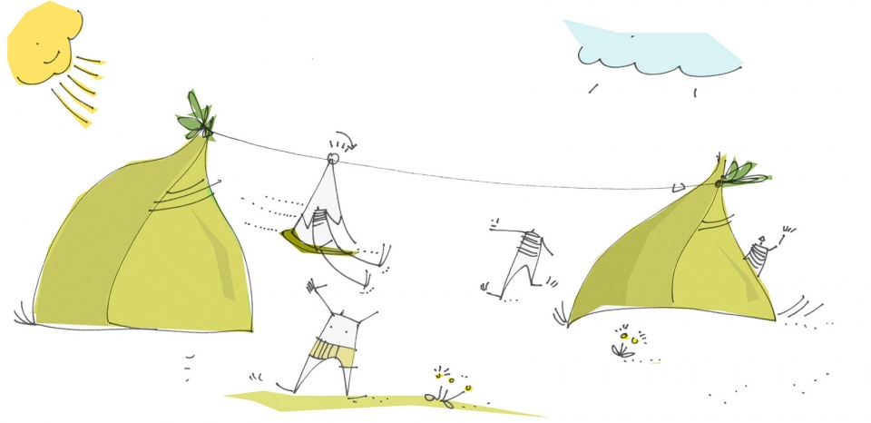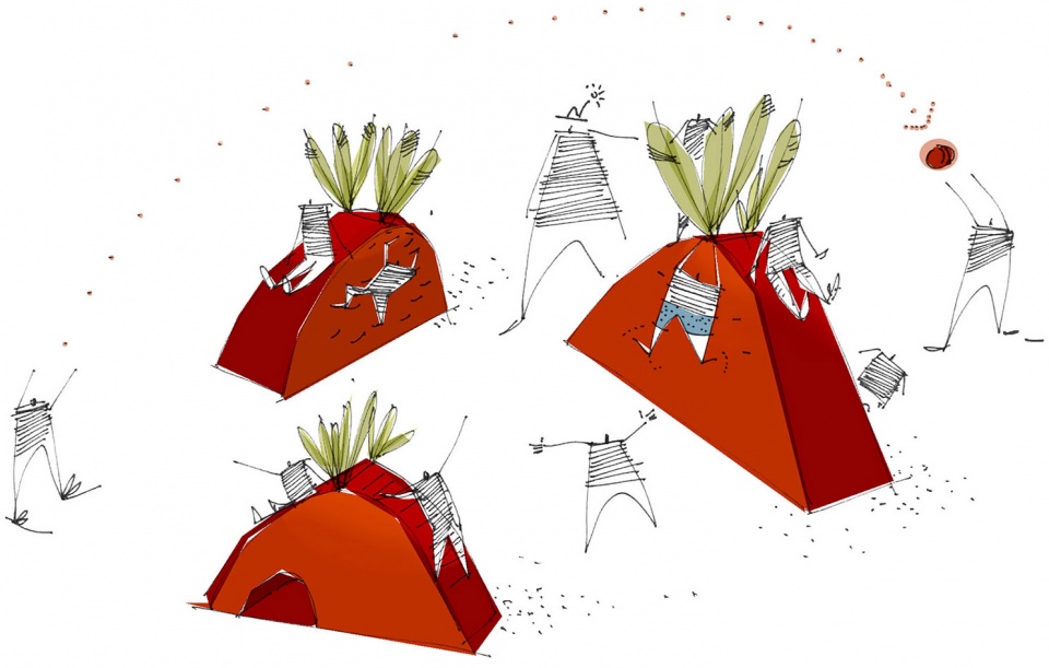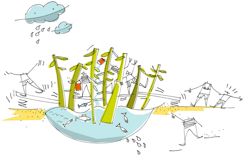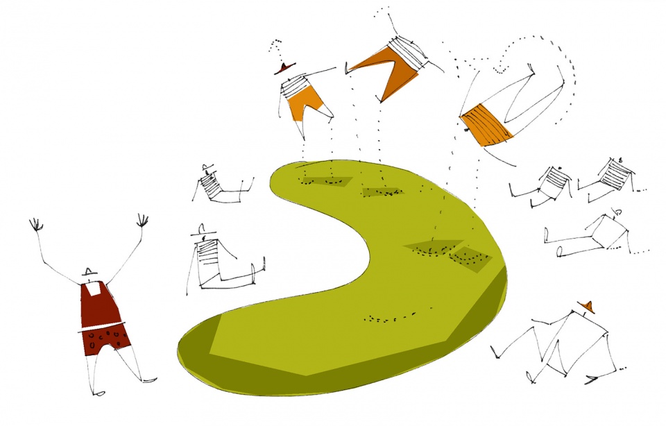 ▼豆子蹦床手绘,the bean trampoline © 德国雷瓦德景观建筑事务所