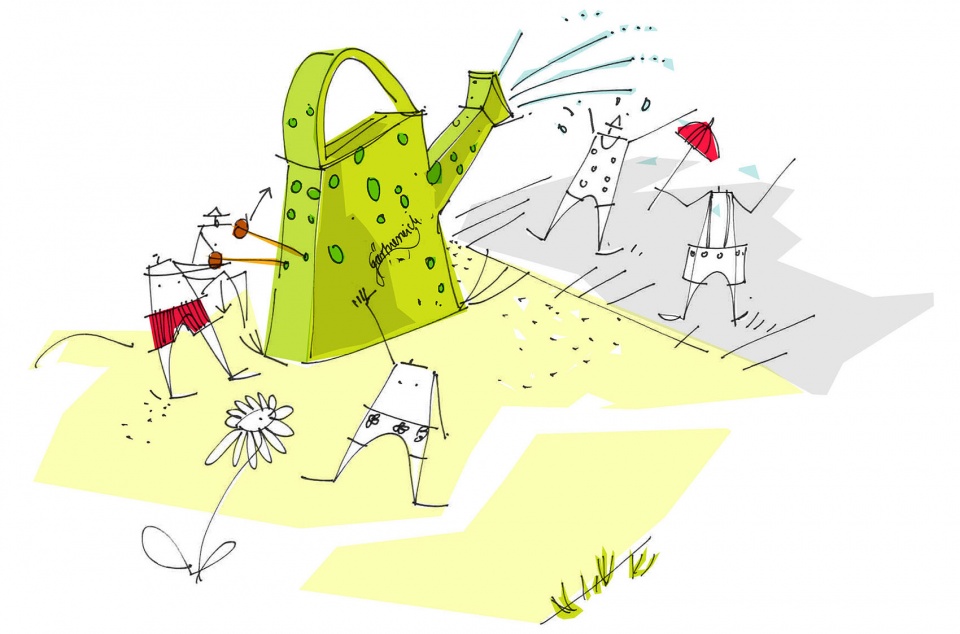 ▼黄色喷灌花壶手绘,the hand-painted yellow sprinkler flower pot © 德国雷瓦德景观建筑事务所