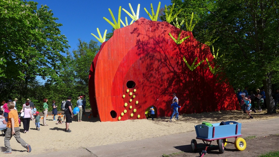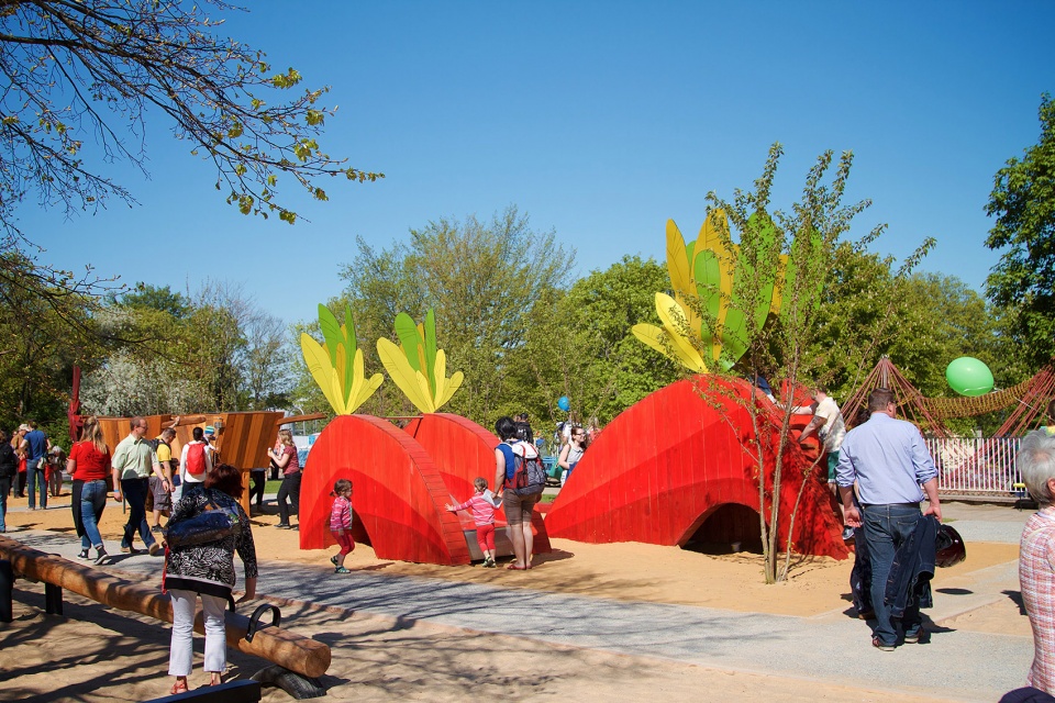 ▼装有安全座椅的草莓秋千,strawberry swings with safety seats © 德国雷瓦德景观建筑事务所