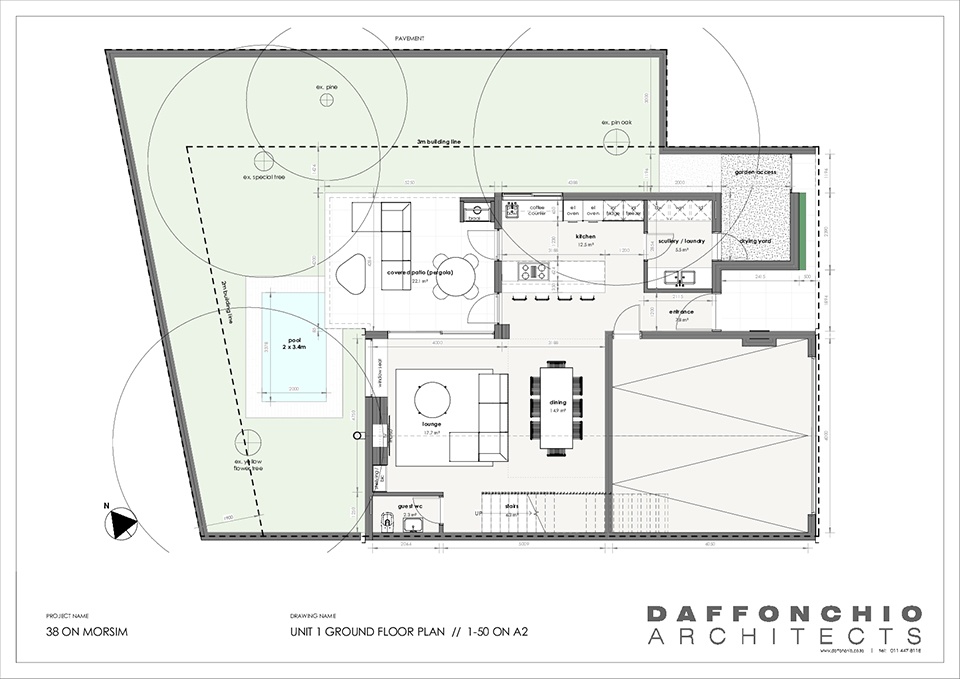 Both developer and architect have a keen interest in sustainable design and an important element of the brief was to incorporate energy efficient methods, components and materials into 38 Morsim Road. The brief for the project also requested working towards an EGDE rating from the Green Building Council of South Africa.