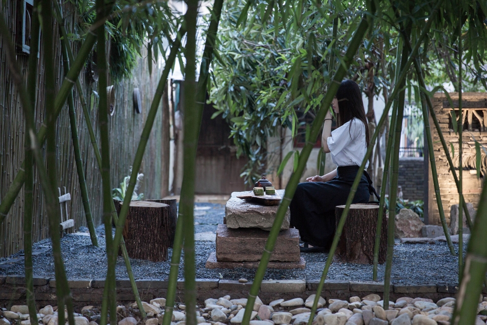 ▼透过景墙看竹下品茶空间,Leisure space for tea time through the walls
