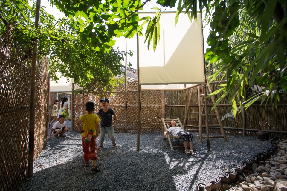 竹星院已经成了横港村里孩子的新游乐场。孩子们兴奋好奇的打量头顶的“大灯罩”,在院落的碎石上奔跑。