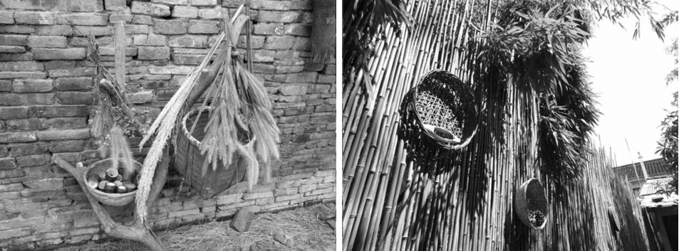 ▼用当地材料与村中旧物设计的院中软装,Decorations made of local materials and old objects