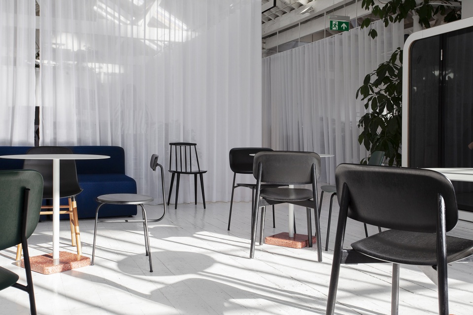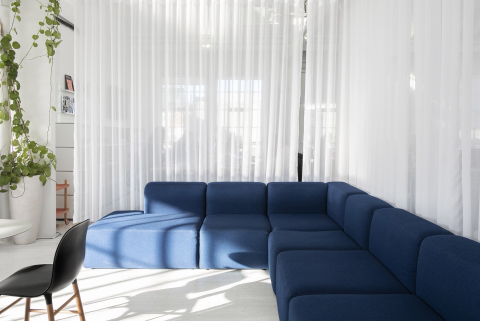 “HUT帮助我们在阁楼空间创建了一个全新的工作场所,他们将自然光从三个方向引入以增强空间的开放性和通透度。此外,自然光线还可以穿过特殊的木制屋顶结构照进室内。而诸如灯具和窗帘轨道之类的细微干预设置,则使我们能够基于不同的活动需要来规划办公空间,并满足初创企业快速发展所需的灵活性。”