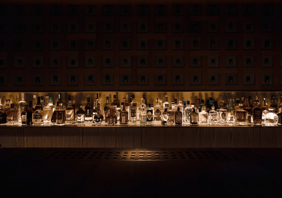 ▼吧台后展示酒的柜体,the shelf behind the bar exhibiting the spirits ©胡彦昀