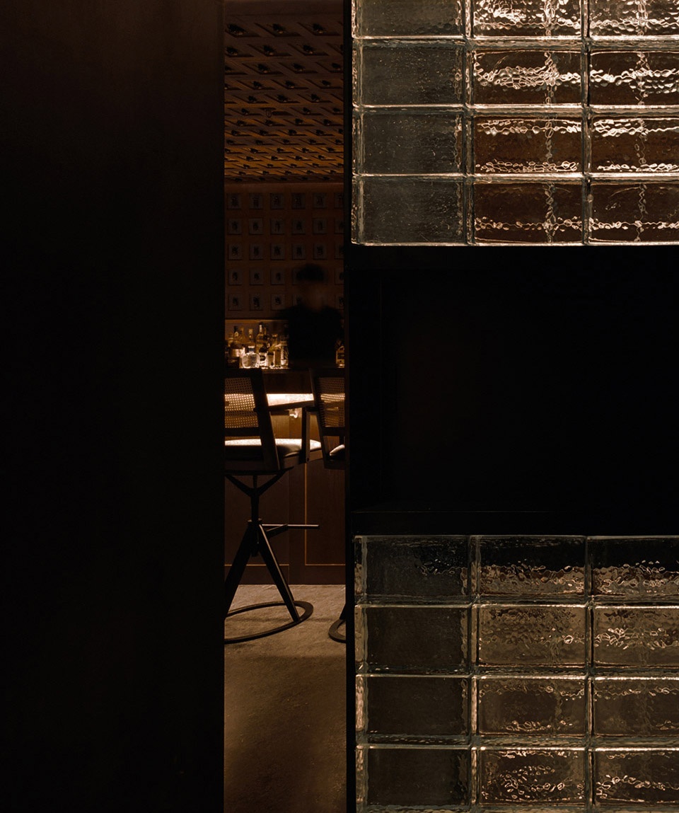▼玻璃砖墙上藏有通往秘密酒吧的入口,secret entrance hidden on the glass brick wall ©上/下左:然建筑摄影,下右:胡彦昀