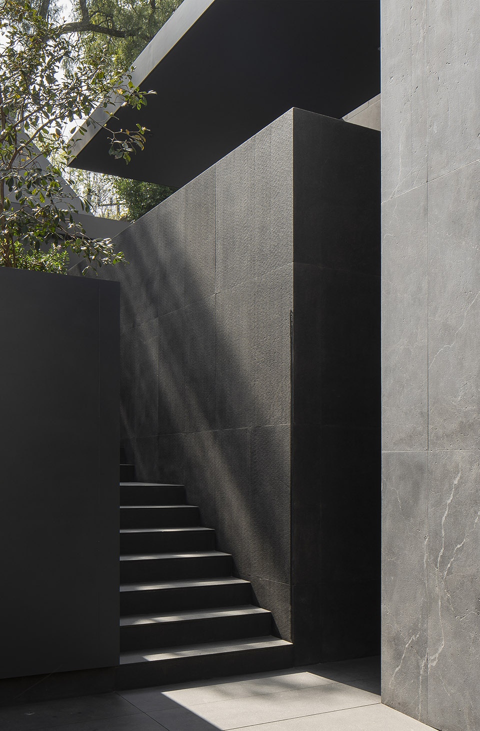 提起墨西哥,人们总会想起浓烈的色彩和充满活力的内部空间。本项目反其道而行之,通过干净利落的几何形状和宁静的色调来平衡住户的艺术收藏品所带来的活力。AdH住宅位于洛马斯·德·查普尔特佩克(Lomas de Chapultepec)的一个住宅区内,凭借着其极具次序感的高质量室内外空间,为人们营造出一个宁静的居住环境。
