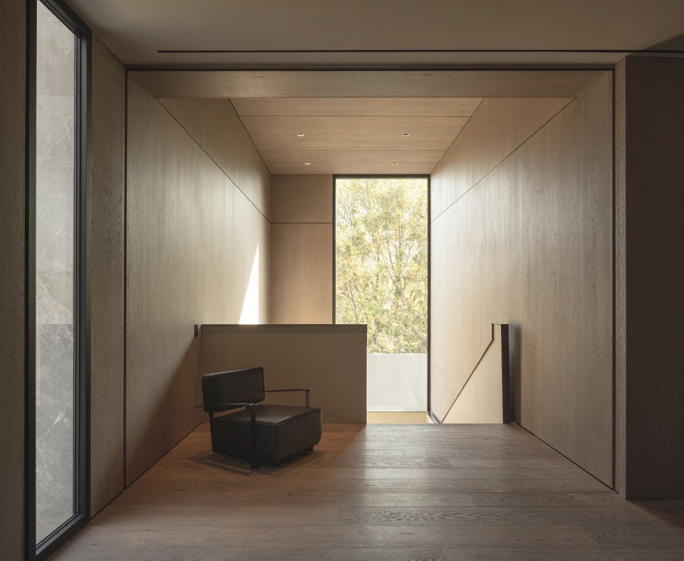 二层容纳着四间卧室。每间卧室都有自己的独立卫浴和衣橱,并且可以直接通向共享起居室。