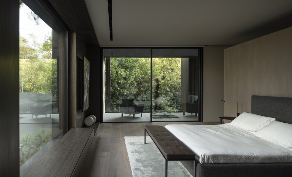 ▼卧室,大型的落地窗确保了景观视野,the bedroom, the floor-to-ceiling window provides a good view ©David Zarzoso