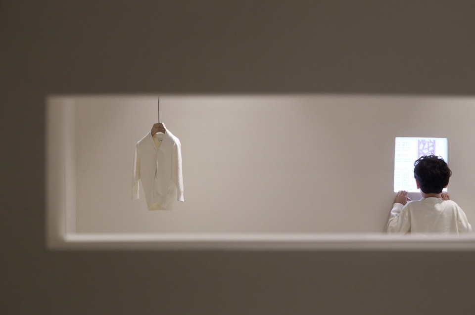 ▼透过窗洞看童装店空间,viewing the interior store through a rectangular opening
