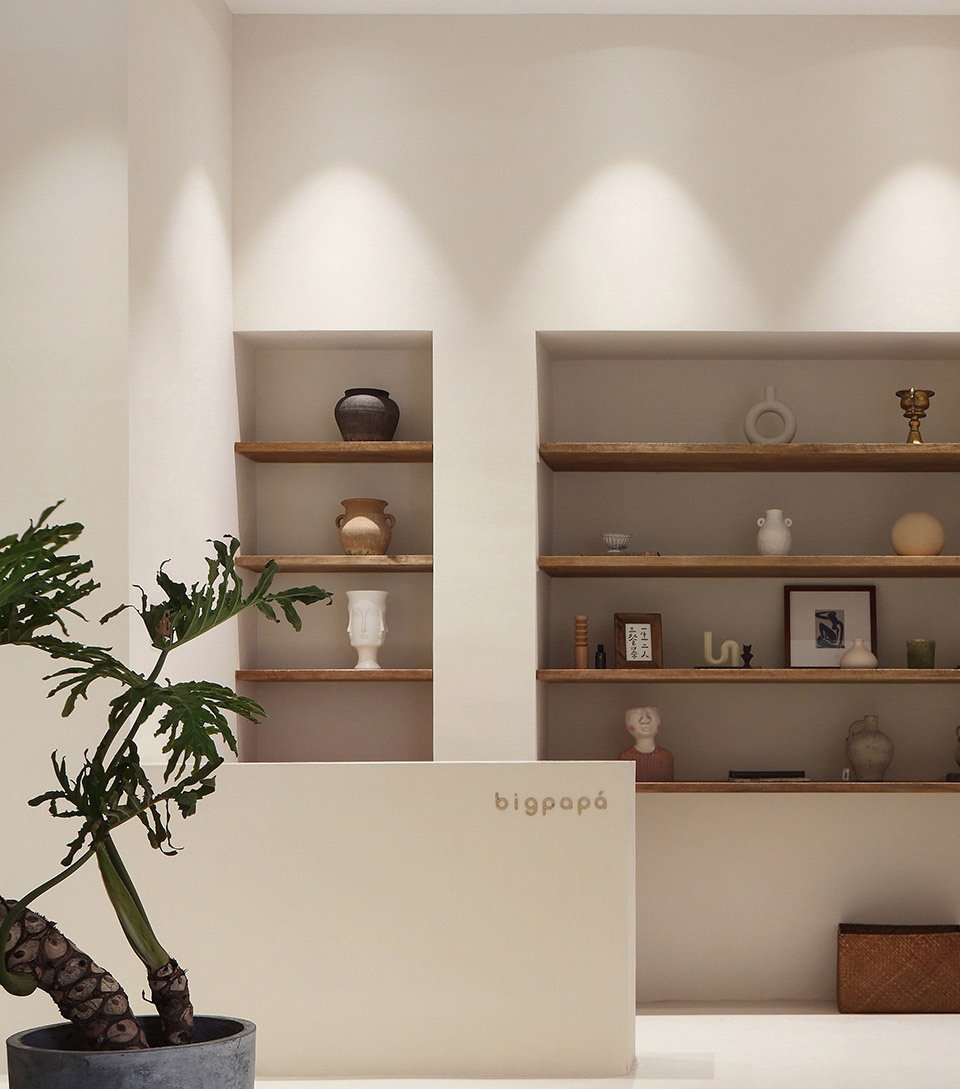 “我们想做一间不囿于固定年龄和性别、别开生面的集合店。希望人与空间产生互动,可以好奇、张望、驻留或者合影留念。在动态的日常切片里,发现它富有包容性和毫无拒人千里之外的亲近感。”惊喜地是,设计师的理念与BigPapá的主理人程先生夫妇在初次交流时,一拍即合,于是有了这次作品的完美呈现。与周遭“自由生长”的店招毗邻,我们希望BigPapá更克制,更干净素雅一些。以抵挡来自车水马龙的街道嘈杂和人群来往的喧闹,动与静之间,有对比,有缓冲,有大千世界和个人精神世界内心对话。
