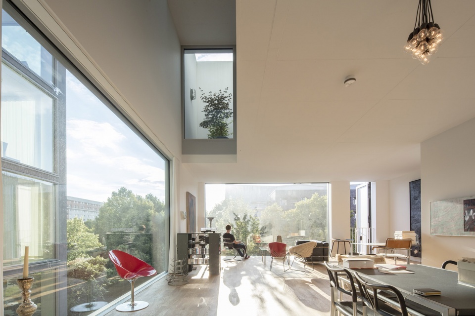 每个Loft单元都有三处开窗,这三个大型落地窗将生活空间与街景连通起来。立面上的“挂毯门”既满足了通风,又可以作为紧急排烟通道使用。