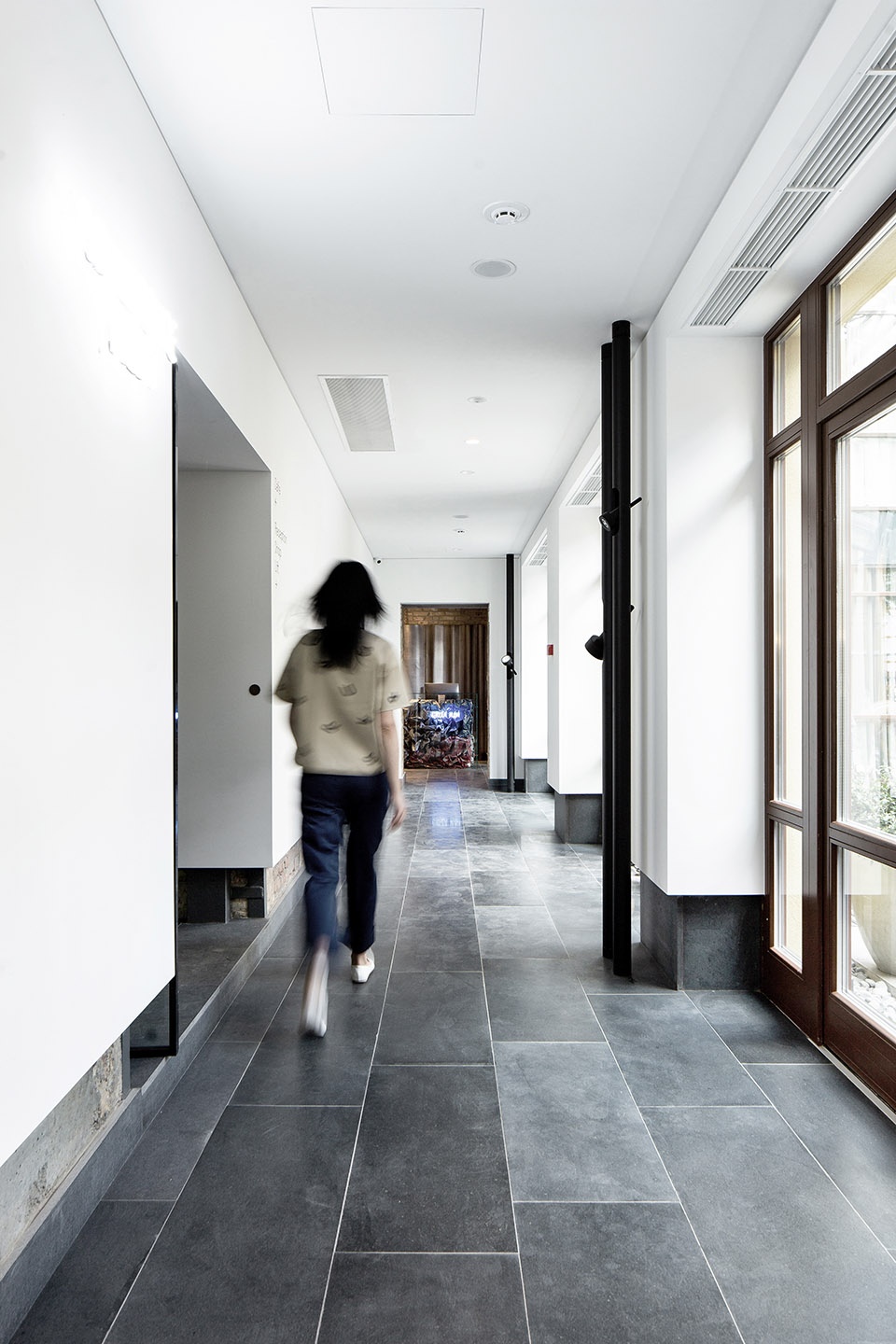 酒店的两座建筑各自具有一百年和两百年的历史,在该项目中得到了彻底翻新,并与新建成的现代化街区融合为一个整体。不同的建筑风格在视觉上建立了连接,同时也为其内部空间定下了基调。设计的核心思路是将两座历史建筑与一座现代化的建筑连接起来,使传统的价值与现代的艺术、设计和创新形成共生关系。
