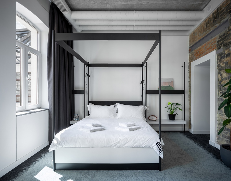 The common thread running through the entire space is a distinctive influence of Bauhaus style, best known for promoting functionality in architecture and design through simplified geometrical forms and minimal use of embellishments. Every room and common area in BURSA hotel is our interpretation of Bauhaus style. Clean lines, simple forms, monochrome palette with just enough color to make an accent, to keep it unique. Even the smallest room feels spacious due to careful planning, use of light and color, and total exclusion of unnecessary elements.