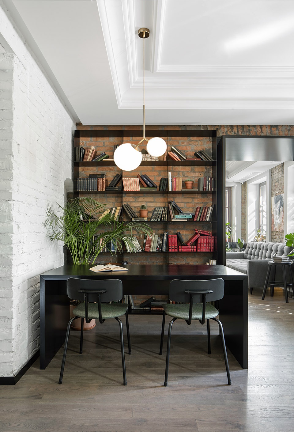 ▼砖砌台面与既有的墙壁无缝衔接,the brick frieze in the is perceived as an integral part of the wall ©Yevhenii Avramenko