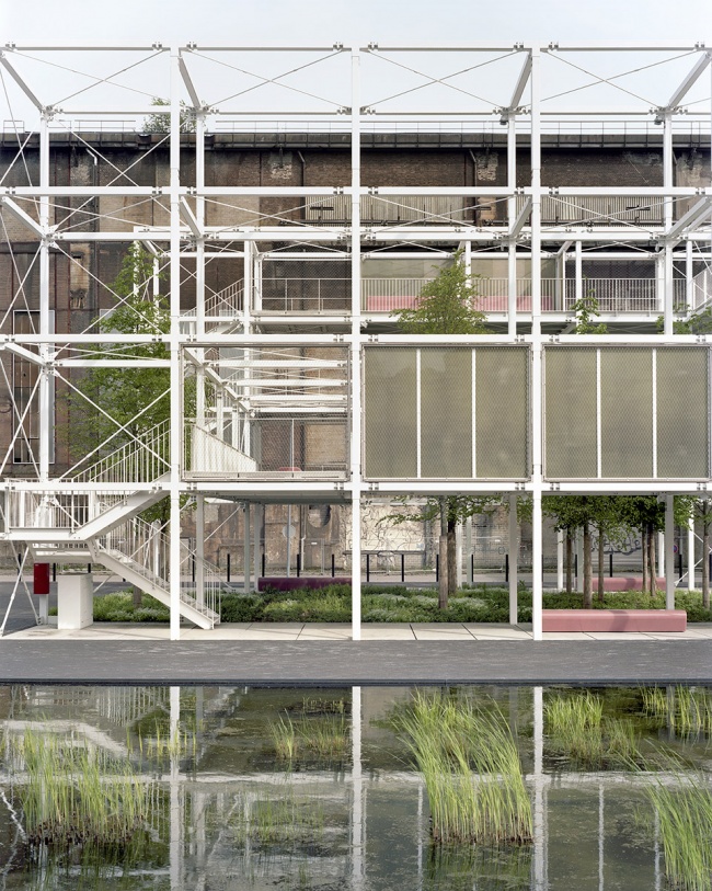 This privileged situation enables visitors to grasp the overall quality of the site and to gaze upon these enormous buildings from a different perspective. In fact, these vertical structures provide a rare opportunity to evade the public space while also remaining inside, and linked with other people. They introduce possibilities of brief moments of isolation conducive to feeling and grasping the gigantism of this reprogrammed and reactivated industrial site.
