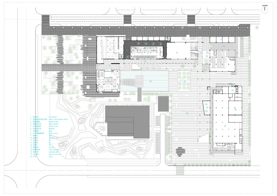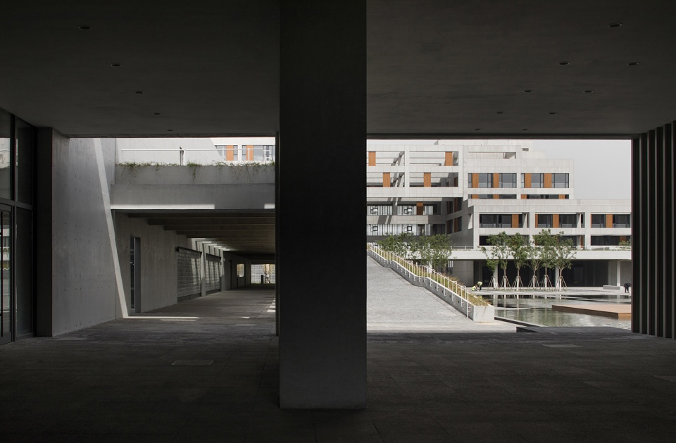 To avoid making the whole building cluster too bulky, we tried to construct the space through stagger and intersection of volumes and meanwhile, create many courtyards and open spaces between the building masses. The shift of the solid and void functions as the thread of the spatial narrative, and the in-between spaces enable natural transition between different functional blocks and courtyards.