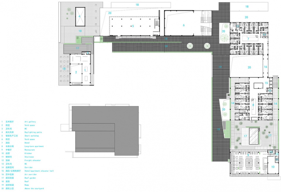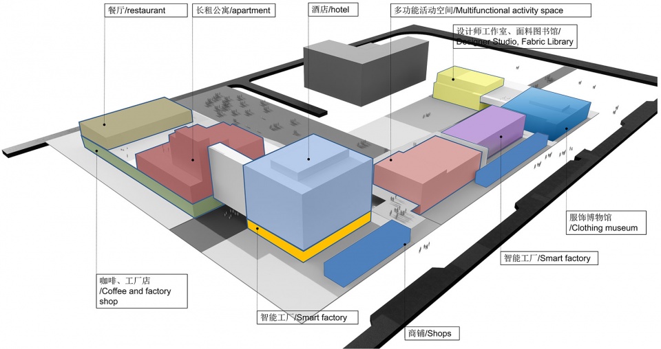 在功能空间分布上我们将使用功能、生活社区与配套服务进行叠加,以开放的进入方式进行串联,试图创造出一个立体的复合型空间,将商业、展示、工作和居住、生活、休闲功能融为一体,达到共存并置的理想状态。