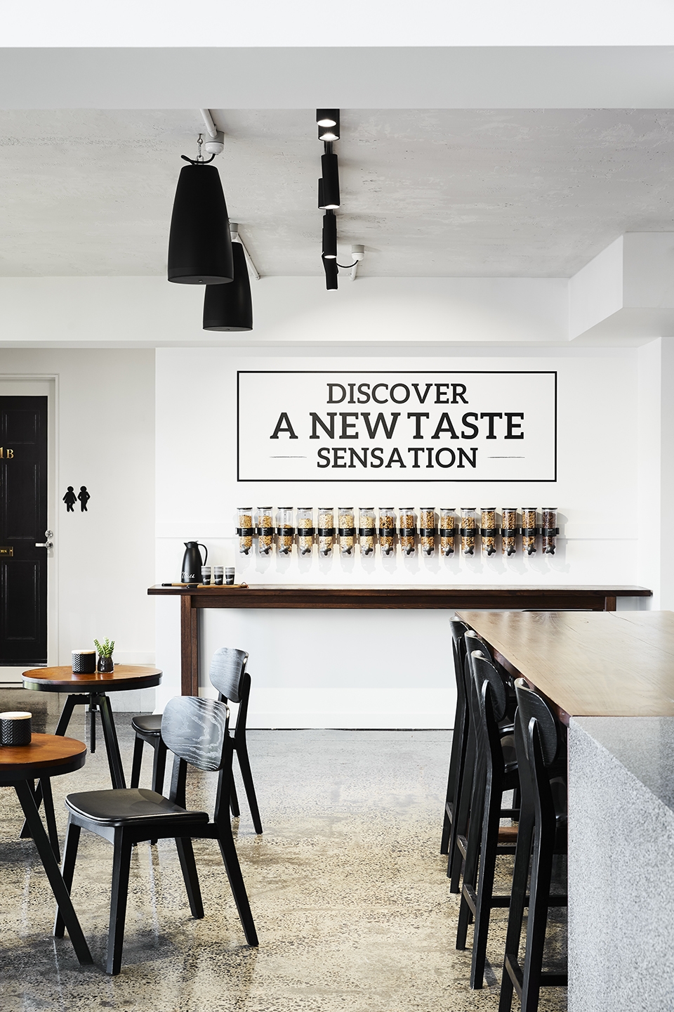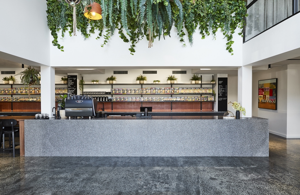 A former chocolate factory within Melbourne’s industrial sector of Huntingdale has been transformed into the inspiring new Head Quarters for Australia’s beloved breakfast and snack brand, Carman’s. A hub to welcome employees and consumers alike, the innovative design reinvents wellbeing within the workplace, while cultivating an environment that stimulates creativity and collaboration.