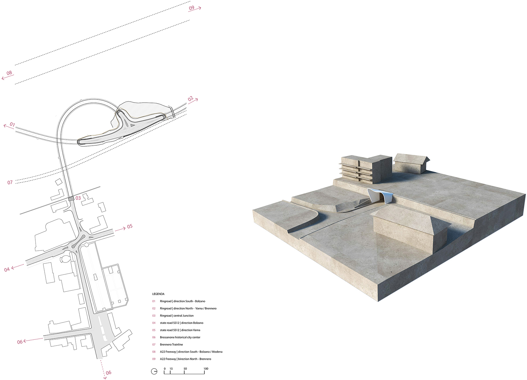 该项目被构想为通往南蒂罗尔Bressanone城市中心的新门户,亦是对Bressanone-Varna环城公路的最新补充。这项基础设施是由MoDusArchitects设计,由一系列相连的、大部分位于地下的道路构成,旨在缓解交通压力,同时为两个城市中心提供额外可选择的路线。