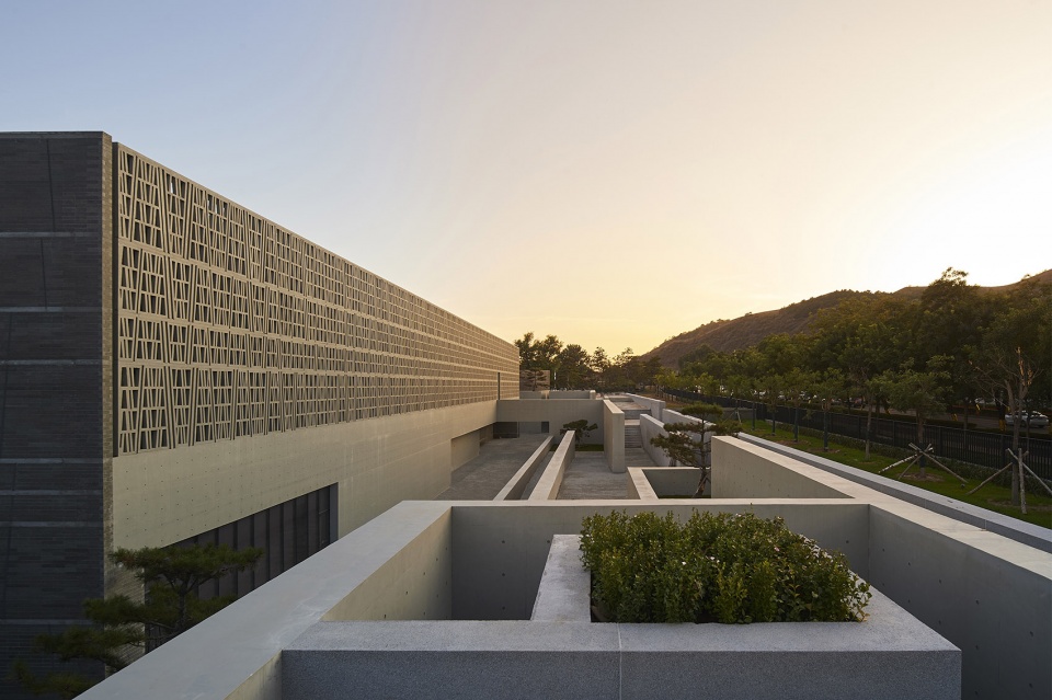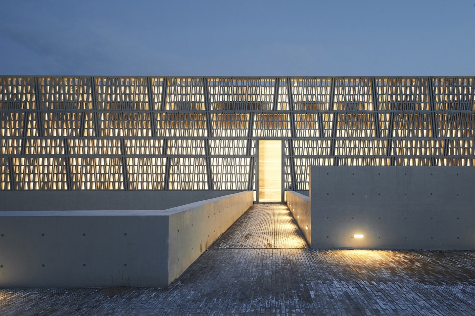 For example, on the main facade along the west side of the site above the road, glass fiber reinforced cement (GRC) decorative panels are used to make a whole “large trapezoidal set of small trapezoidal” perforated lattice walls, which bring light into the room like the window lattice in ancient buildings.