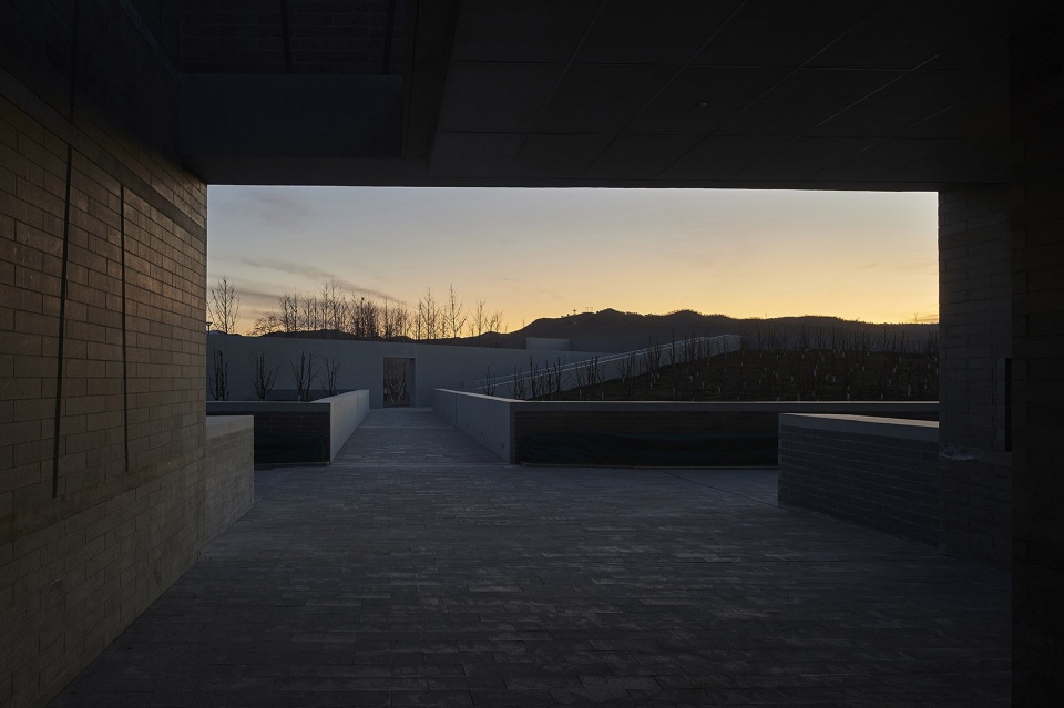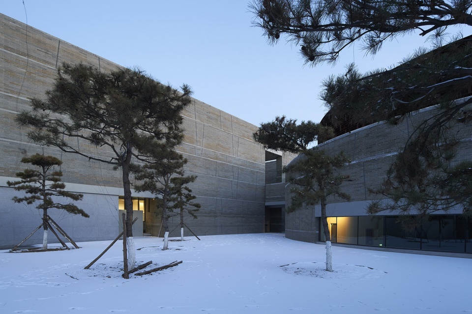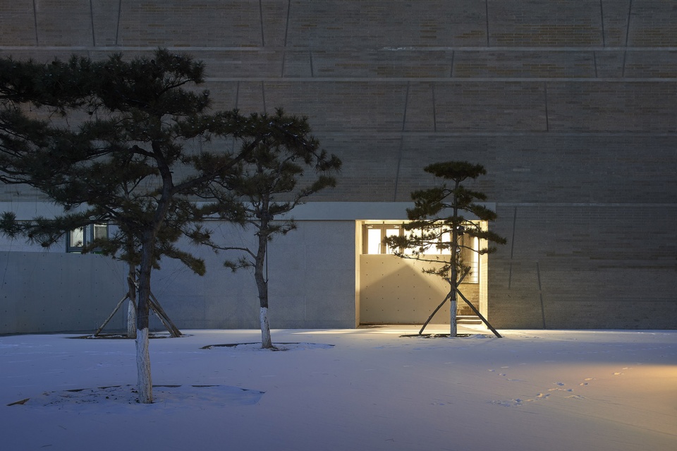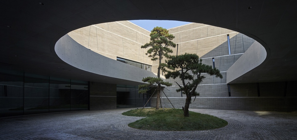 From the new “ground”, the building is arranged up two floors, combined with the scattered layout of the courtyard, forming a good lighting and ventilation effect, eliminating the sense of closure of conventional underground buildings. In this way, the part of the building out of the ground can be controlled within 7m, as if “hidden” in the environment.