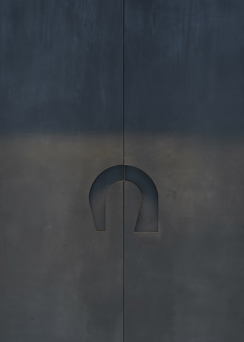 The contour of the shallow pond is another smaller and turning “horseshoe” that protrudes along the arc of the “horseshoe”. Two “horseshoes” are intertwined in the vision and create a spatial feeling. The concept of horseshoe was also integrated to the door handle of the exhibition hall