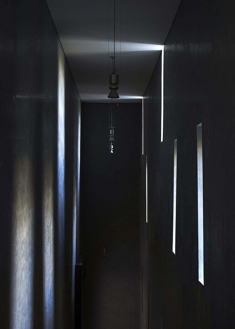 ▼墙面的水平线条间,嵌入了许多左右倾斜的成品水泥条,between the lines of the wall are embedded with many inclined finished cement strips ©魏刚