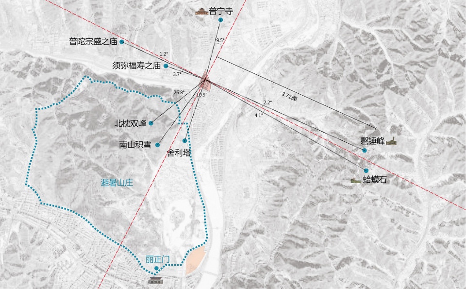 The site is located in a special area surrounded by ancient buildings and scenic spots – with Puning Temple in the north and The Mountain Resort in the south, with the temples of Xumi Fushou and Putuo Zongcheng in the west and the Qingchui Peak and Anyuan Temple in the east, which is the third-level cultural relic protection area.