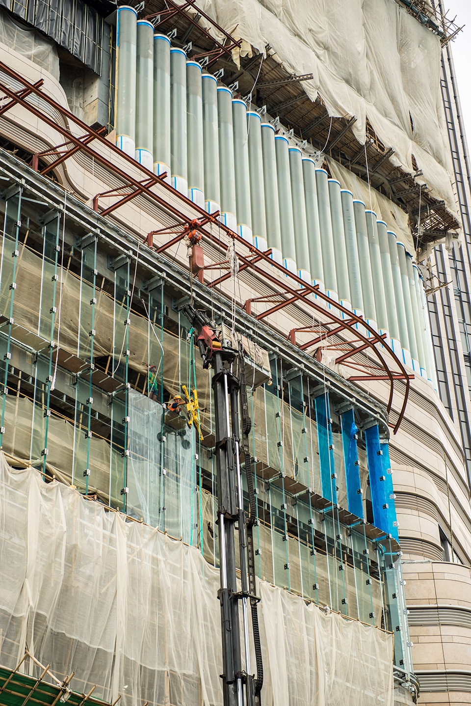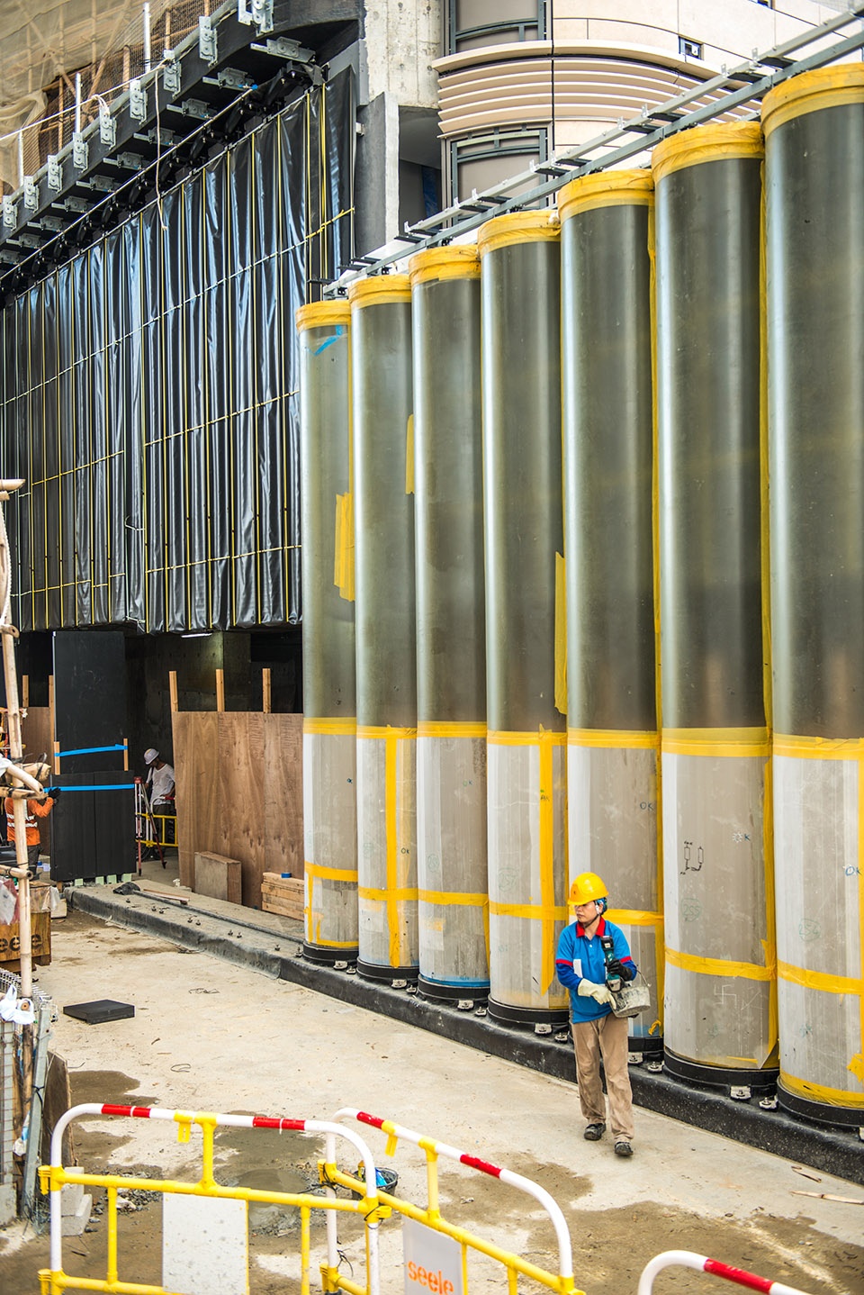 Construction on site: SO–IL proposed to envelop the floating museum with a facade made of glass tubes