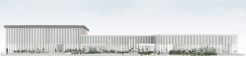 通常,博物馆建筑会采用封闭的不透明体量来隔绝嘈杂的都市环境,避免卷入高度商业化的城市空间。SO–IL的方案则提出采用玻璃立面来为博物馆赋予漂浮的效果:整体外墙由高9米、直径为1米的管状玻璃单元围合,每“根”玻璃管的重量达到2吨。从街道上看,具有雕塑感的玻璃立面将呈现出一种抽象且超现实的视觉效果,将博物馆与其所在的环境明显地区分开来。走近建筑时,人们则可以通过其透明的立面清楚地观察到博物馆的内部空间,同时带来有趣的光影和反射效果。