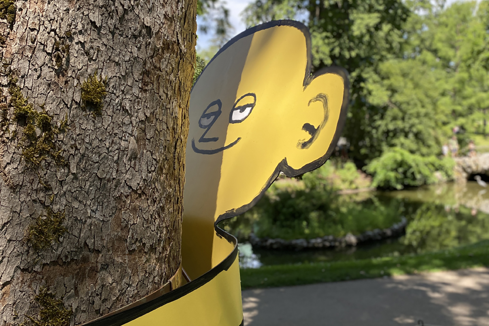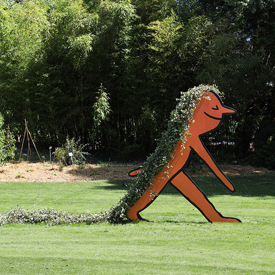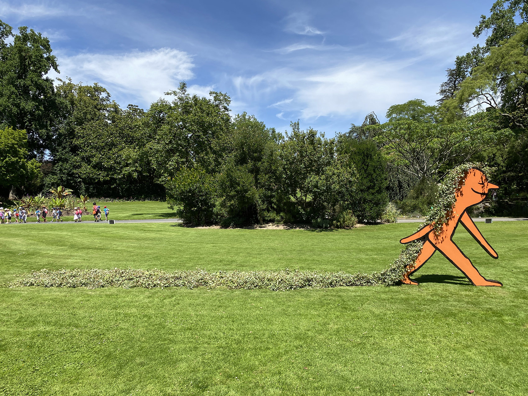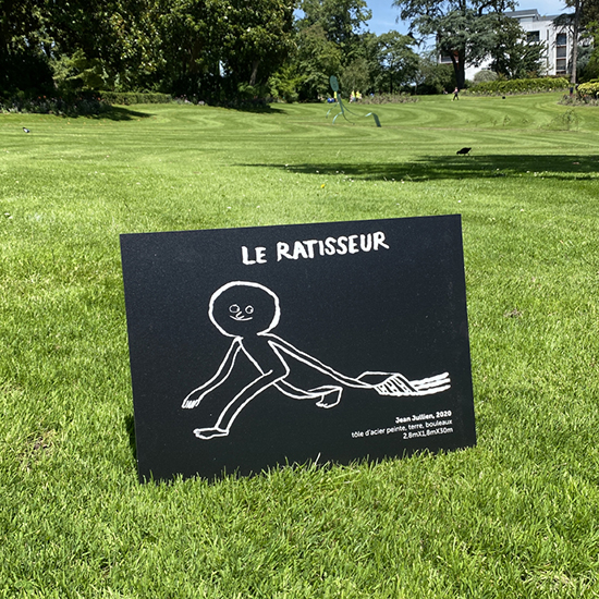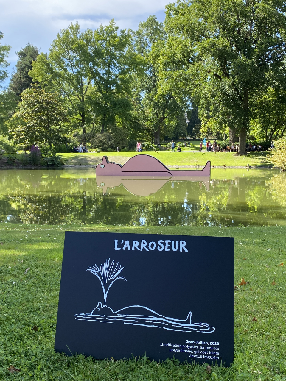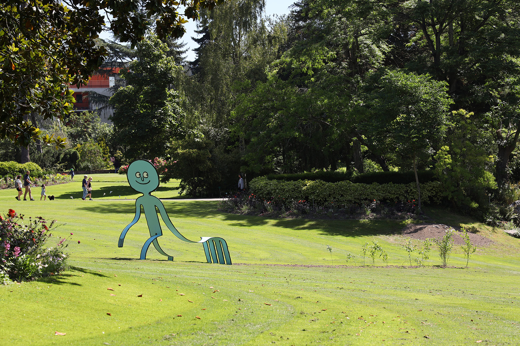 The City of Nantes, in partnership with Voyage à Nantes, and as part of the Journey to Nantes 2020 route, welcomes the artist Jean Jullien to take over the Jardin des Plantes for two consecutive seasons: from July 10, 2020 to November 2021.Within this exhibition, entitled “Filili Viridi”, Jean Jullien will exhibit original and monumental creations, specially imagined for the Jardin des Plantes in Nantes. Visitors will thus be able to see and in some cases interact with 4 different installations, representing fanciful and funny characters, distributed in the middle of the large pool, on the lawns and around the trees.These creatures were all imagined by the artist Jean Jullien:L’Arroseur,Le Ratisseur,La Coiffe, Les Enrouleurs.