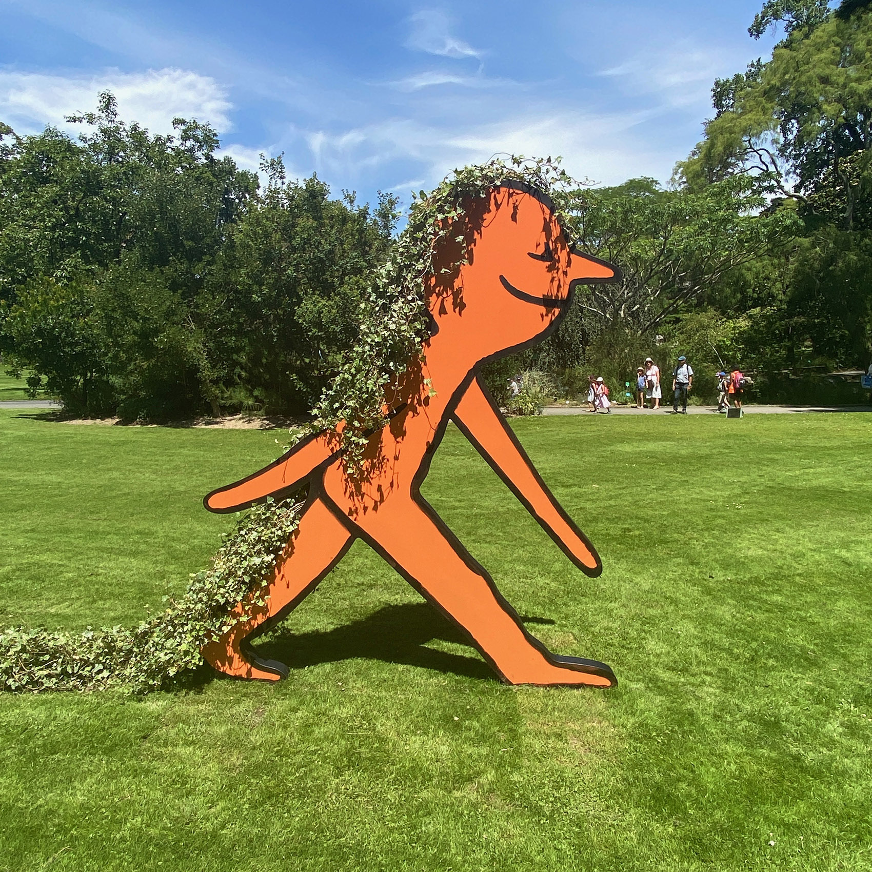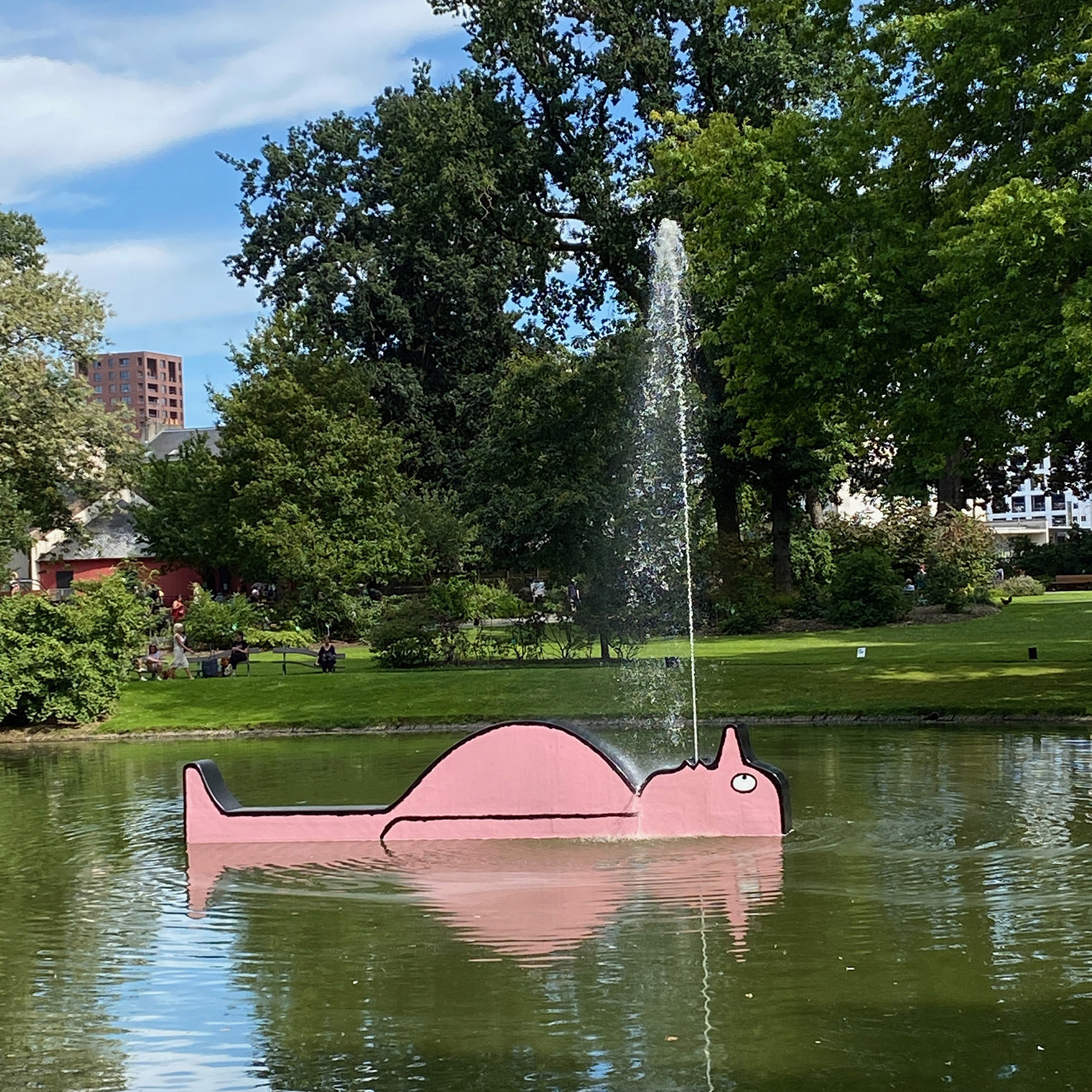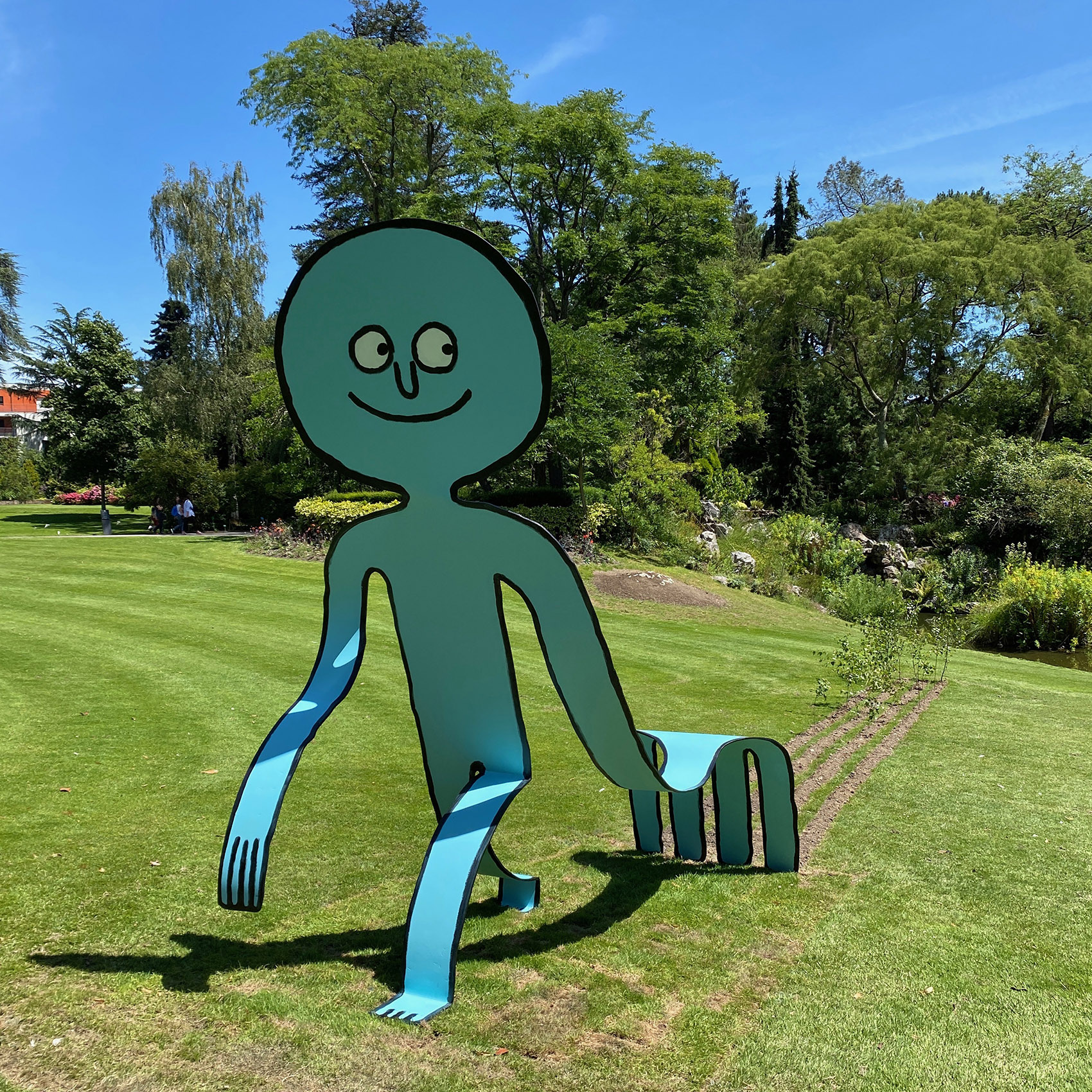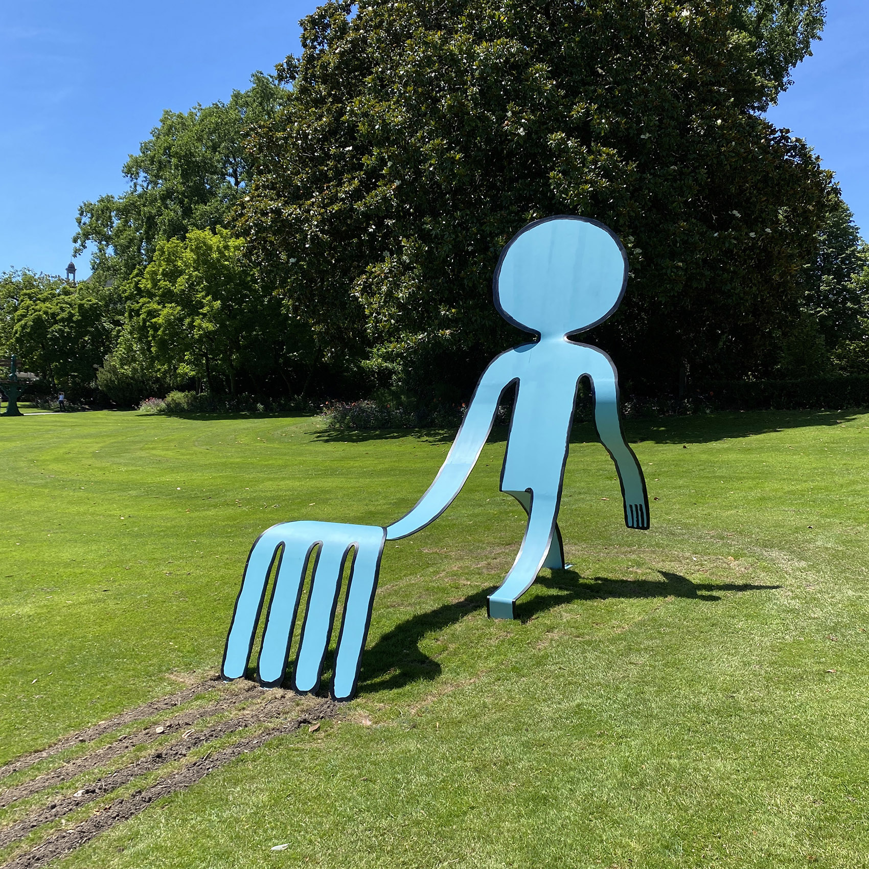 The City of Nantes, in partnership with Voyage à Nantes, and as part of the Journey to Nantes 2020 route, welcomes the artist Jean Jullien to take over the Jardin des Plantes for two consecutive seasons: from July 10, 2020 to November 2021.Within this exhibition, entitled “Filili Viridi”, Jean Jullien will exhibit original and monumental creations, specially imagined for the Jardin des Plantes in Nantes. Visitors will thus be able to see and in some cases interact with 4 different installations, representing fanciful and funny characters, distributed in the middle of the large pool, on the lawns and around the trees.These creatures were all imagined by the artist Jean Jullien:L’Arroseur,Le Ratisseur,La Coiffe, Les Enrouleurs.