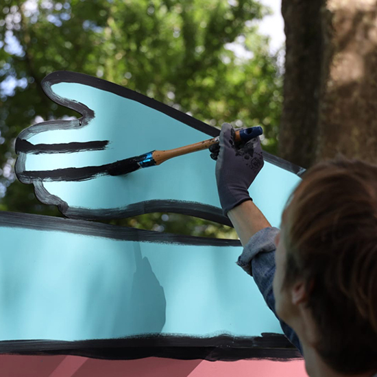 ▼艺术家在绘制装置,the artist is painting the installation © Jean-Felix Fayolle