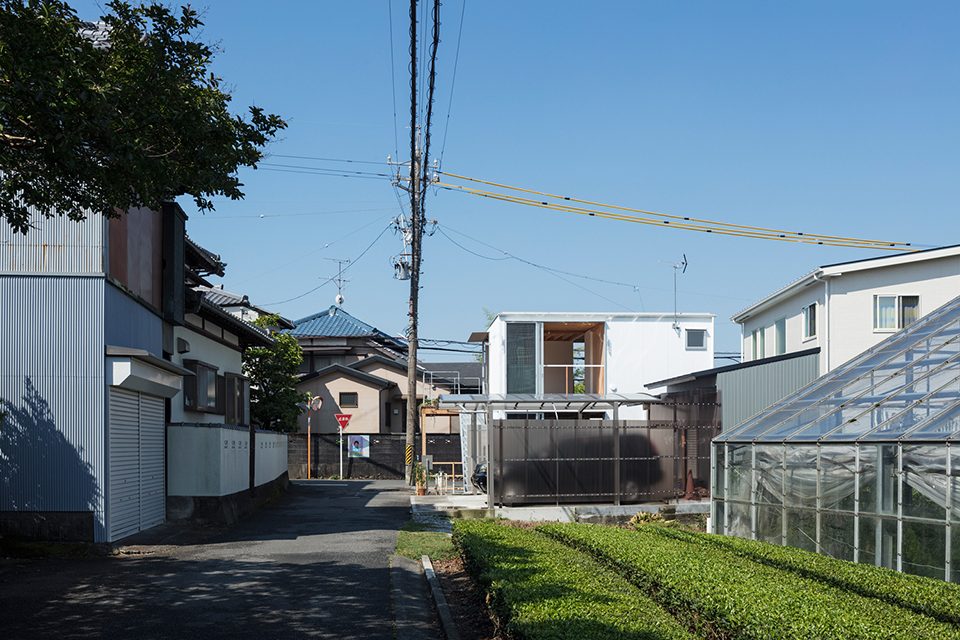 这座商住两用的小屋坐落在静冈市中心外的日本平(Nihondaira)山地边缘,其所在的区域混合了大型的农舍、茶田以及新开发的住宅,另有一些小商店分布在悠闲的环境当中。街道缓缓地沿着山坡蜿蜒而上,仿佛一开始就存在于田野之间,富士山的美景也会不经意地进入视野。方形住宅就身处这样一种环境之中。