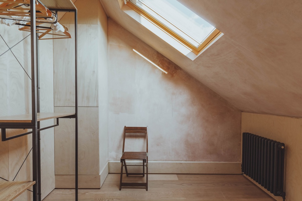 ▼桦木胶合板墙面,plywood clad loft ©Adam Firman