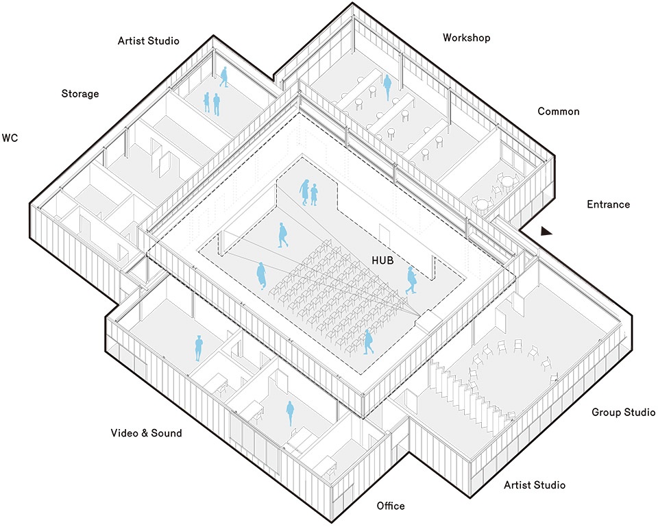 Program: Artist Studios, Workshop, Video and Sound Studios, Exhibition and Event Spaces