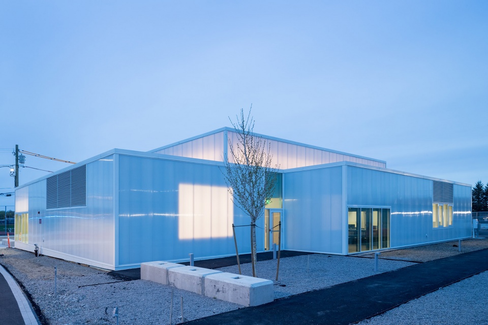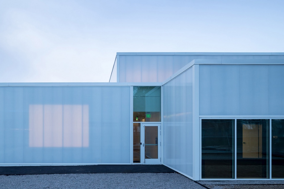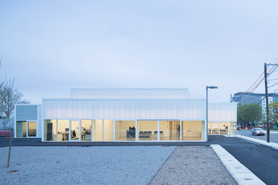 建筑适应了马萨诸塞州在能源效率方面的高标准,预计将实现净零耗能。主体结构使用了轻型的钢柱和空腹钢制桁架以及混凝土楼板。框架结构通过机械固定,能够轻松高效地进行组装和拆卸,必要时还可以整体移动,为建筑带来二次生命。钢制框架的外部包覆着透明的隔热玻璃和轻质高绝缘性聚碳酸酯板,呈现出变化的透明度。在白天,立面能够为室内带来柔和的自然光和街道视野,晚上则使建筑成为一个发光的“灯箱”。这些材料一方面强调了建筑的短暂性,另一方面则为艺术活动提供了耐用且灵活的空间。屋顶以光伏板覆盖,能够为建筑提供必要的能源。