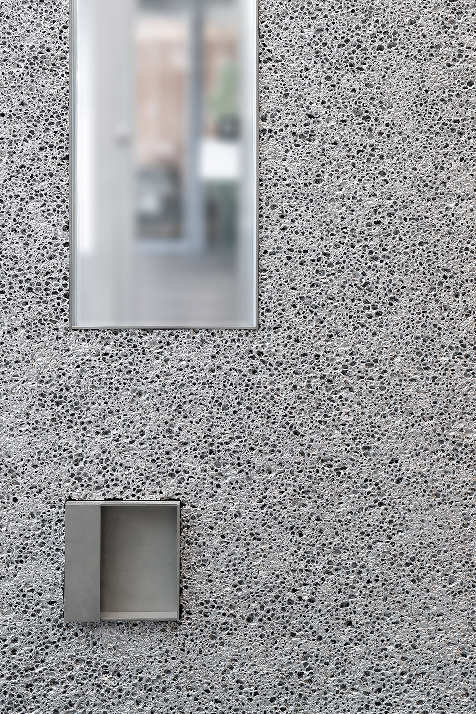 Key Materials: Foam aluminum, Bestmo terrazzo flooring, matte stainless steel, volcanic stone, gradient film