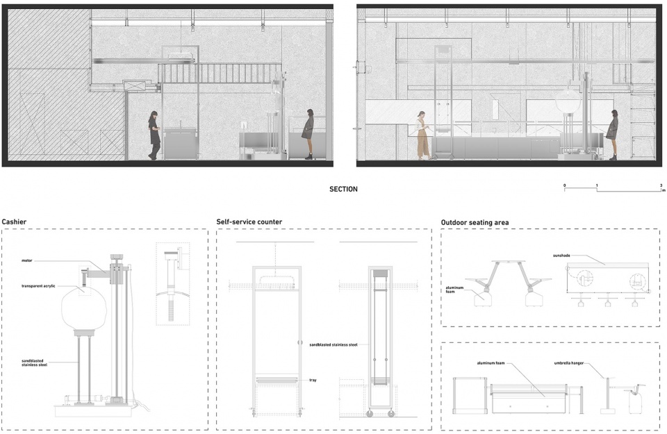 From past, present to future, humans keep exploring the world of food in multiple perspectives, which stimulate continuous iteration and breakthrough in food industry;while the development of the industry and technology brings great possibility to food and our life. Such symbiotic relationship became the inspiration of the concept design. The designer abstructed elements from the complexity of post-industrial age to create interesting spaces with mechanical aesthetics. With contemporary mainstream media, the designer demonstrate the spirit of exploring and the brand new idea of bakery in the core of this brand, and delivered to its customers from the new generation.