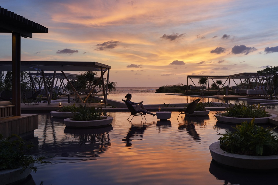 Enjoy the different seasons of Okinawa by having a soak in the pool, where the temperature of the water will be controlled A 10cm deep pool has a seats inside the water, welcoming guests for a casual pool-side nap or read. There is also an infinity pool that projects out over the cliff and towards the ocean. Where both the ocean and the sky becomes one. This is one of the best places in the resort to watch the sunset