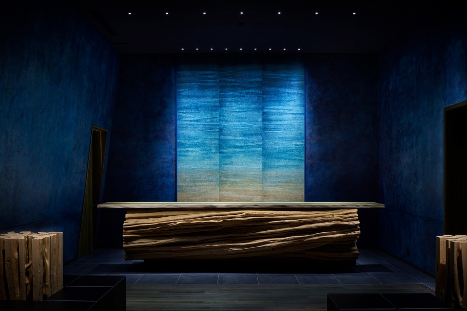 “虹夕诺雅冲绳”最初的想法是提供一种“度假村式的生活”。所以,我们设计了可以安放大餐桌、被称为土间餐厅的空间。土间餐厅是在宾客在下榻期间成为与家人或朋友共同生活的中心。大家能够围绕大餐桌品尝美酒、享用美食,或畅谈,或工作学习,尽情享受在度假村中的生活。