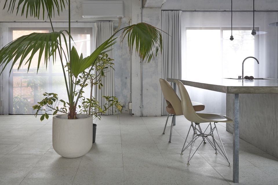 Large “furniture” in the space defines a place for life. Light, wind, and daily scenes reflect on its surface and spread through the space.