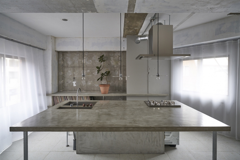 We envisioned a future house. A house reflects its social context and is planned to meet values, customs, and lifestyles of the time. To think about a future house is to imagine future society and lifestyles. This apartment was built in 1979 based on a typical family apartment plan in Japan. Our clients wanted to have a flexible living environment allowing for various activities such as inviting guests and working. A typical apartment plan centered around a space combining a dining room and kitchen, which started 40 years ago in Japan, is no longer effective and needs to be updated to meet diverse demands of today’s society. In this project, we intend to deconstruct a typical apartment based on a “room” and reconstruct it as a “place.” Our focus was on how to incorporate the surrounding environment and envision lifestyles in the new era.