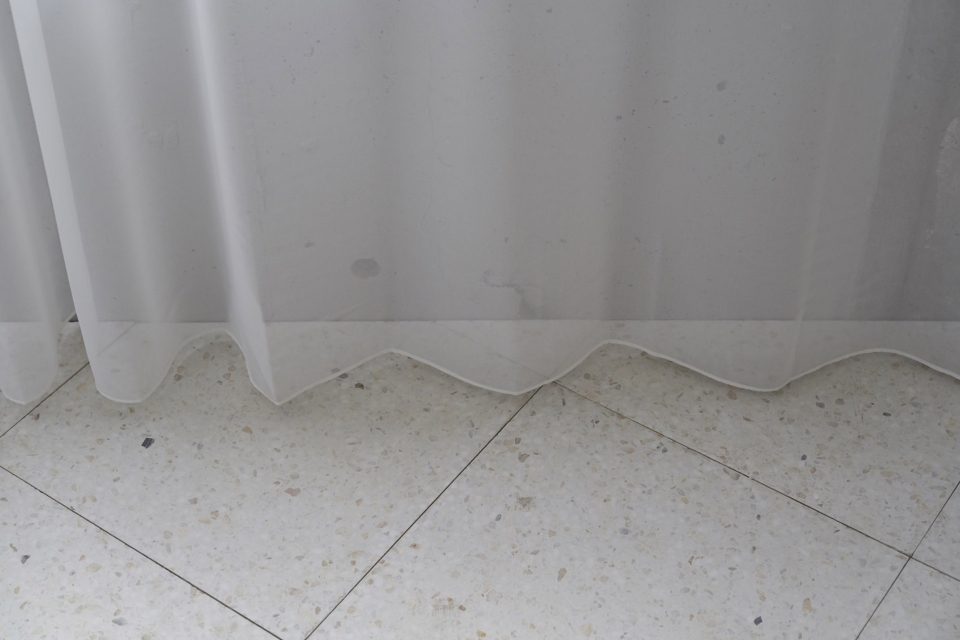 ▼新窗帘与旧墙壁及天花板之间形成张力,tension between the old walls&ceiling and new curtains