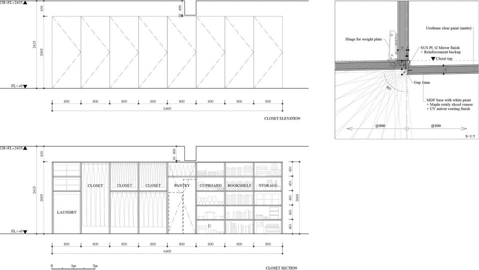 ▼壁橱门稍稍倾斜并产生微妙的间隙,视觉效果随着不同观察角度而改变,slightly angled closet doors create subtle gaps and the impression changes according to the viewing angle