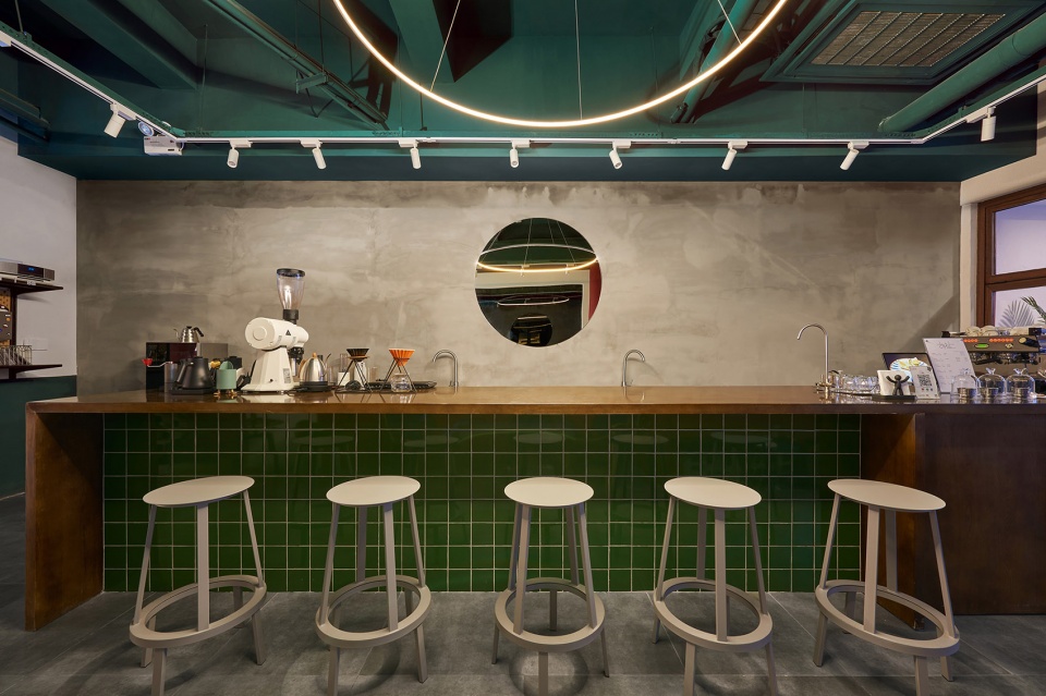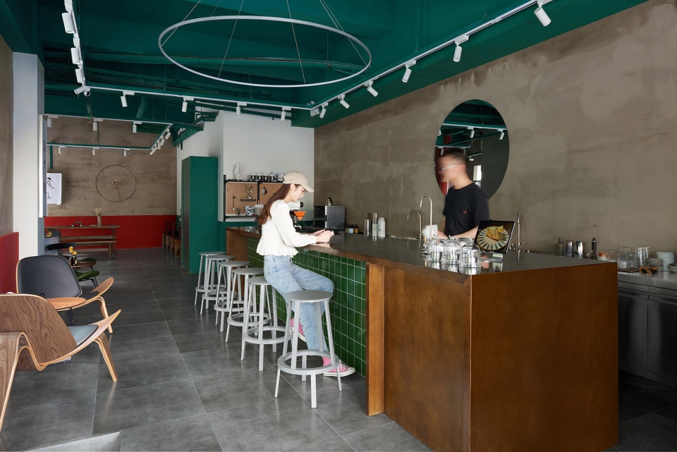 Divide the space into “entrance terrace”, “open kitchen”, “living room”, “dining room”, etc.; let every coffee lover involved become a member of the “big family” of Huche Cafe. The receding entrance has enough space for the terrace. Whether sitting indoors or on the entrance terrace, you can enjoy coffee and interact with the surrounding environment at the same time.