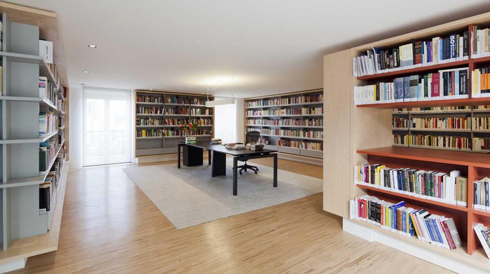 每个楼层都拥有专门的用途,分别被设计为起居空间、工作空间和休息空间。首层包含卧室、厨房和服务区域;二层包含一个拥有5000本藏书的图书室,并且与花园整合在一起,可供房主在这里阅读、办公和写作;第三层是休闲区域,包含音乐房、热水浴缸、桑拿房和烧烤区,空间四周围绕着绿色的种植墙。