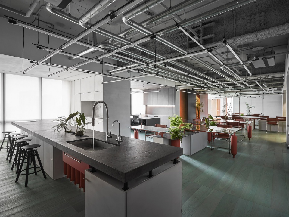 When the inspiration is based on “science” instead of “office”, WATERFROM DESIGN aims to reinforce science in industrial attribute to change the public’s stereotyped image of office. We rely on the laboratory which is the most associated with products, factory, daily test tubes, cast iron, black iron, gas pipes and unique steel cylinders which carry technological gas. We apply common materials and modeling on production chain and transforms them into the structure of office.